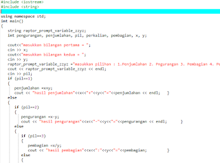 Berikut ini saya akan menampilkan program kalkulator sederhana, baiklah berikut ini adalah tampilan nya